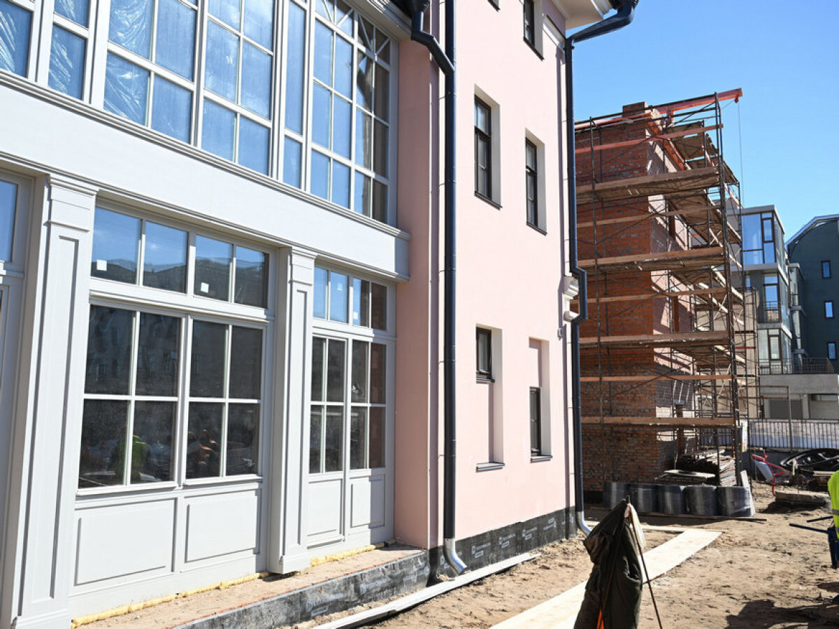 Особое внимание уделили исторической достоверности — в частности, при выборе цвета фасада. В ходе послойной расчистки реставраторы определили, что первоначально здание имело нежно-розовый оттенок, который и был выбран для финальной отделки.