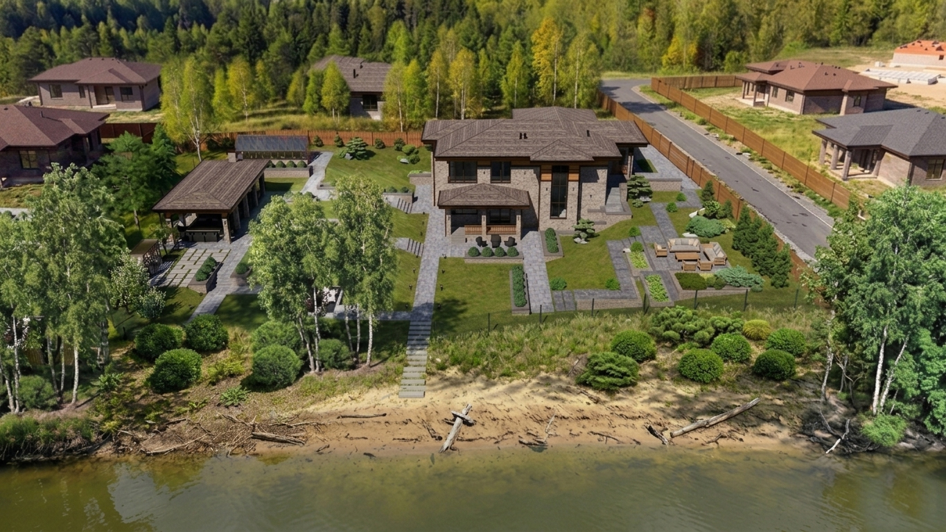 Дополнительным бонусом становятся панорамные виды и близость реки. Участки ориентированы на воду, что позволяет закладывать в проект панорамные окна, террасы и зоны отдыха с открытым видом на природу. Благодаря этому создается ощущение простора и уединения прямо у вашего дома.
